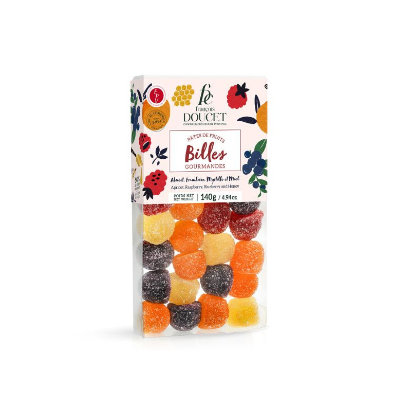 Les Billes Gourmandes sont des petites billes de pâtes de fruits. Élaborées à partir de fruits purs et également de miel de lavande de Provence, elles sont le parfait petit en-cas pour vos envies gourmandes de la journée. Boîte 140g